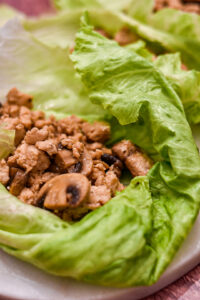 These lettuce wraps are low carb, easy, and delicious! When making these ahead of time, store the filling and lettuce separately. That way you can reheat the filling while keeping the lettuce crisp.