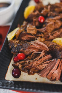 This beef brisket has classic holiday flavors with our Cranberry Honey Mustard and orange while delivering savory, rich flavor in the brisket.