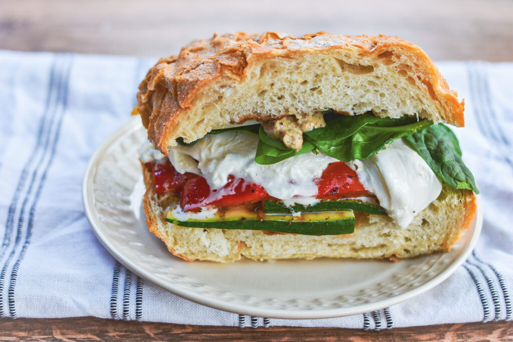 With Spring right around the corner we’ve got our minds on all the warm-weather activities, like picnics in the park! And this grilled veggie sandwich is the perfect addition to your picnic basket!