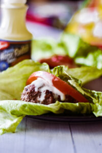 It’s likely you came across this burger recipe because you were looking for a hamburger that’s keto-friendly or low carb, but didn’t want to sacrifice taste. Lettuce wraps are an easy way to swap out the high carb hamburger buns, while still getting to hold your burger in your hand instead of eating it with a fork.