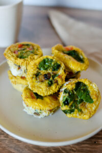 You need to fuel your mornings, but don’t always have the time to make a well balanced breakfast. That’s where these egg bites come in! They can be prepped at the start of the week and reheated quickly in the morning as you’re running out the door and starting your work.