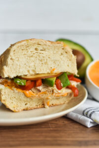There is some prep work for this sandwich to get the chicken and the chipotle mayo (made with our Roasted Chipotle Sauce) ready, but once that is done, it’s easy to assemble and packed full of flavor.