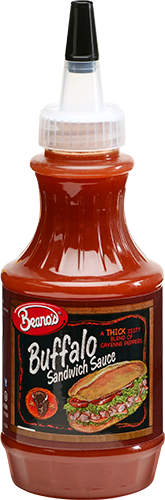 Thick and zesty! Its thickness and extra cling make it perfect for sandwiches, burgers, wraps, quesadillas, fajitas, or as a dipping sauce. Now you can enjoy the authentic flavor of Buffalo wings on any style of sandwich you choose. This sauce has the same great taste as our wing sauce, but thicker. It is so thick it won’t run off sandwiches or soak the bread.