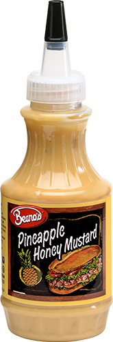 Ingredients: Soybean Oil, Water, Pineapple, Distilled Vinegar, Corn Syrup, Mustard Seed, Honey, Modified Corn Starch, Egg Yolks, Sugar, Salt, Spices, Natural Flavorings, White Wine, Cider Vinegar, Citric Acid, Tartaric Acid, Potassium Sorbate and Sodium Benzoate (as preservatives), Xanthan Gum, Paprika, Caramel Coloring, FD&C Yellow #5, and Calcium Disodium EDTA to protect flavor. Contains: Egg
